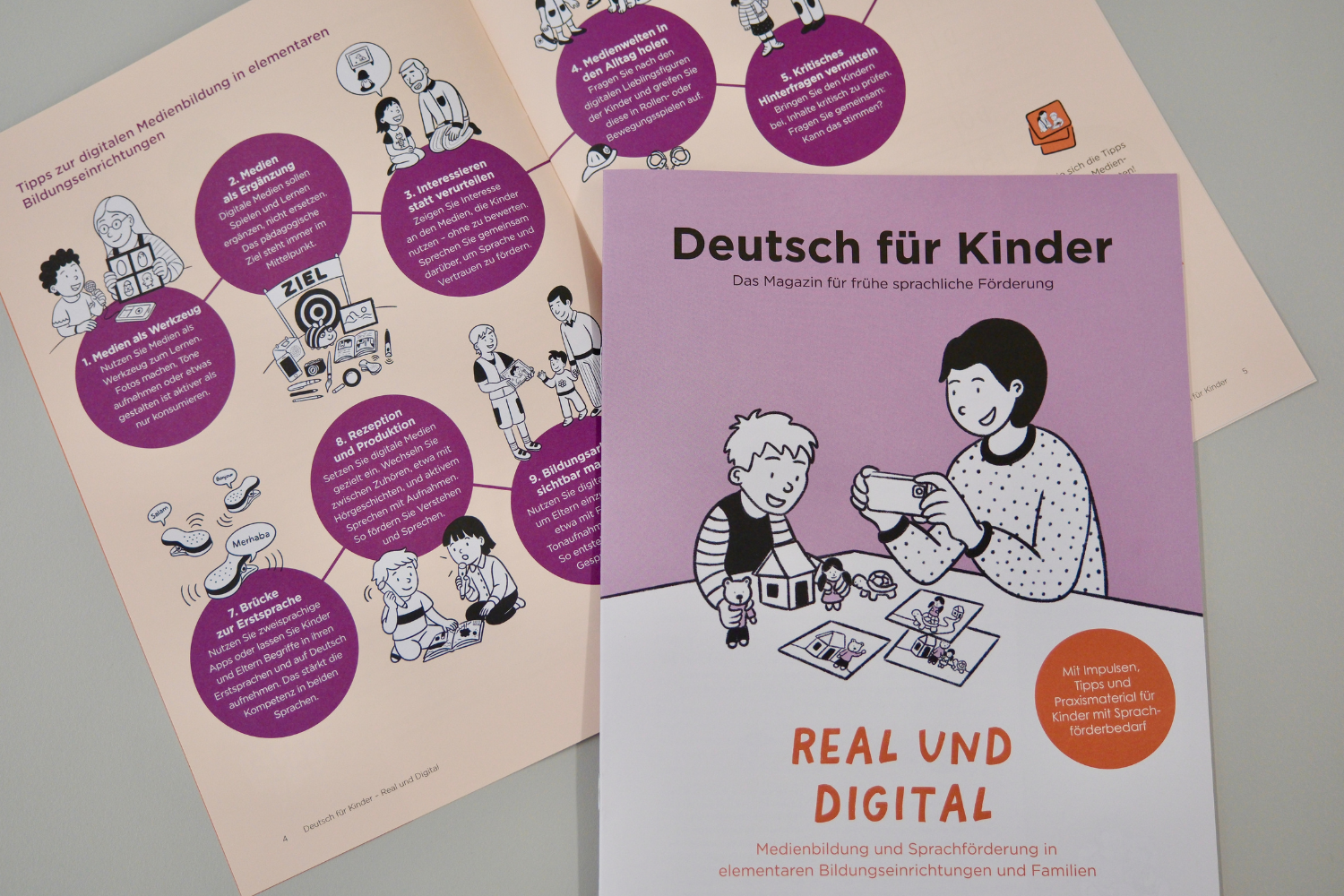 Digitale Medien gehören längst zum Alltag von Kindern – auch in der frühen Sprachförderung bieten sie neue Chancen: Die vierte Ausgabe des Praxismagazins „Deutsch für Kinder“ des Österreichischen Integrationsfonds (ÖIF) widmet sich unter dem Titel „Real und Digital“ der Verbindung von Medienbildung und Sprachförderung in elementaren Bildungseinrichtungen und Familien. In Kooperation mit dem Wiener Bildungsserver und der Pädagogischen Hochschule Oberösterreich zeigt die neue Ausgabe, wie digitale Medien im Kindergarten- und Schulalltag sinnvoll, kreativ und sprachfördernd eingesetzt werden können. Die neue Ausgabe des Magazins steht ab sofort auf der ÖIF-Website zum Download zur Verfügung und kann kostenlos bestellt werden.