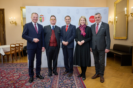 Rektor Walter Vogel und Hochschulratsvorsitzender Christoph Ascher waren im November beim Junglehrer*innenempfang mit LH Thomas Stelzer, LH-Stv.in Christine Haberlander und Bildungsdirektor Alfred Klampfer im Landhaus.