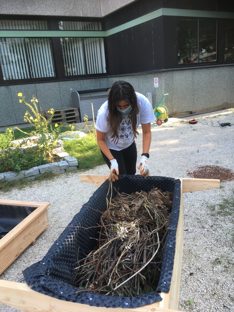 Im Sommersemester 2023 erfolgte ergänzend zum Insektenhotel die Anlage einer Sandfläche als Nisthabitat für spezialisierte Wildbienen- und Einsiedlerwespenarten durch Studierende der Lehrveranstaltung Projekt Schulgartenarbeit 1 - daran angrenzend wurde auch ein Blühstreifen mit Nektarpflanzen angesät.
